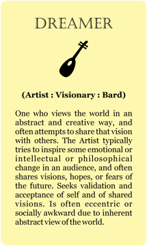 Note: This is the only suit which can be presented "reversed" (upside down). Reversed position indicates a "failed" Archetype (not necessarily a bad thing), perhaps suggesting incompetence or maybe the burden of a forced role which causes the character discomfort or misery, among other possibilities.